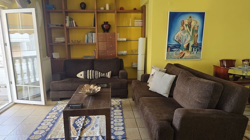 Το διαμέρισμα διαθέτει δύο ευρύχωρα υπνοδωμάτια, ένα μοντέρνο μπάνιο, δύο άνετα σαλόνια με όμορφη διακόσμηση, ένα ζεστό τζάκι, μία πλήρως εξοπλισμένη κουζίνα και μεγάλη τραπεζαρία. Οι μαγευτικοί πίνακες μέσα στο διαμέρισμα προσθέτουν μια μοναδική πινελιά κομψότητας στον χώρο και το μεγάλο μπαλκόνι προσφέρει ένα ιδανικό σημείο για να απολαύσετε την εκπληκτική θέα στη θάλασσα. Το διαμέρισμα βρίσκεται, σε ένα καλά συντηρημένο κτίριο με ανελκυστήρα και ιδιωτική είσοδο, προσφέροντας άνεση και πολυτέλεια, καθιστώντας το ιδανική επιλογή για όσους αναζητούν μια άνετη και κομψή εμπειρία παραθαλάσσιας διαμονής.