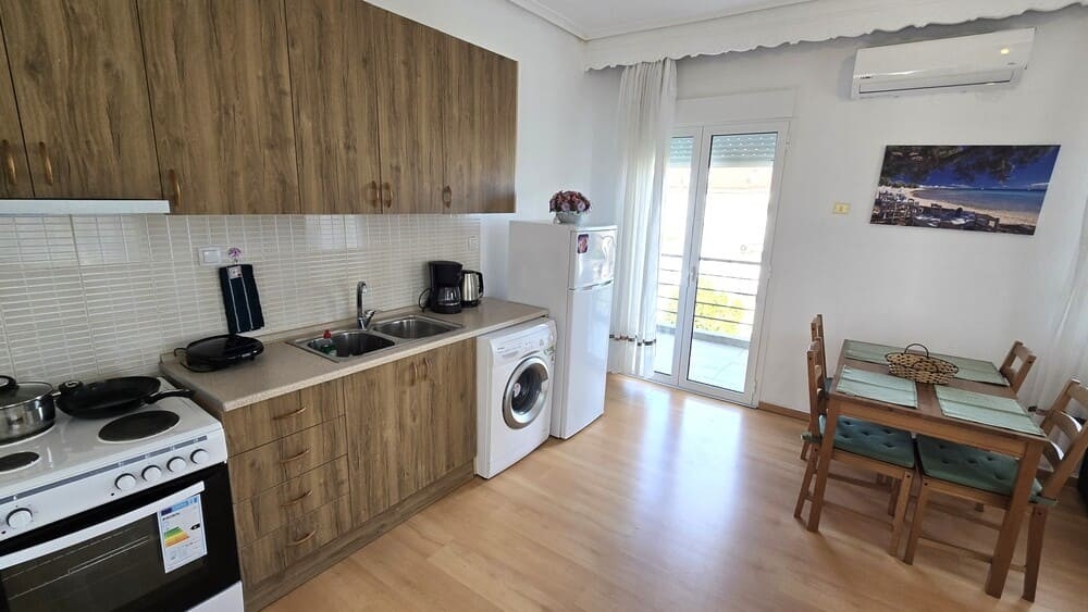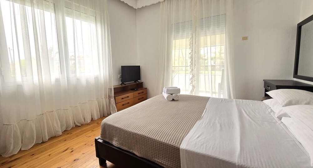 Το διαμερίσμα περιβάλλεται από έναν καταπράσινο κήπο, ιδανικό για στιγμές χαλάρωσης, ενώ το BBQ που διατίθεται στον εξωτερικό χώρο τα καθιστά ιδανικά για φιλικές ή οικογενειακές συγκεντρώσεις. Το μεγάλο τους πλεονέκτημα είναι η ανεμπόδιστη θέα στον επιβλητικό Όλυμπο, που προσφέρει μια μοναδική εμπειρία. Είναι κατάλληλοι για μεγάλες παρέες ή οικογένειες που αναζητούν άνεση, λειτουργικότητα και ομορφιά σε ένα φιλόξενο περιβάλλον.