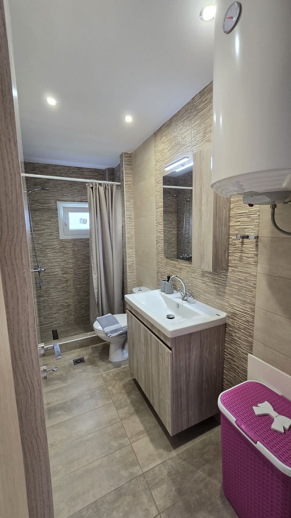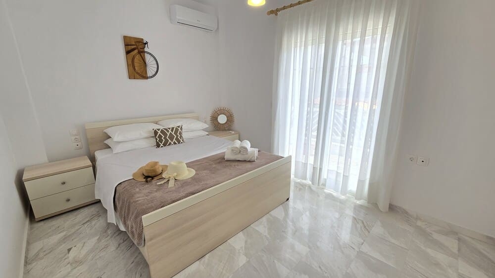 It features two spacious bedrooms – one with a double bed and one with two single beds – each equipped with a large wardrobe for convenient clothing storage. The living room includes a sofa that easily converts into a bed. The fully equipped kitchen allows for home-like meal preparation, while the presence of two large balconies offers unique relaxation moments. Additionally, there are two air conditioning units in the living room and the master bedroom, providing coolness and comfort. There is also free Wi-Fi access and a smart TV in the living room for unlimited entertainment. The apartment is located just 100 meters from the beach, making it ideal for those who desire easy access to the sea and relaxing moments in the sun. Furthermore, there is a large supermarket just 100 meters away, making daily shopping convenient for guests.