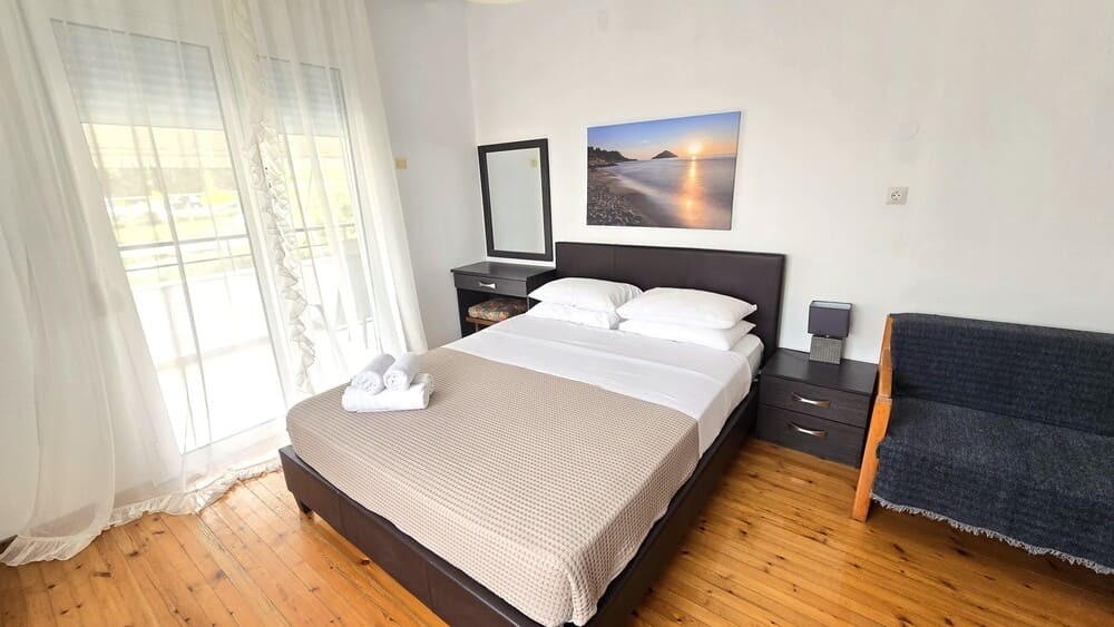 Το διαμερίσμα περιβάλλεται από έναν καταπράσινο κήπο, ιδανικό για στιγμές χαλάρωσης, ενώ το BBQ που διατίθεται στον εξωτερικό χώρο τα καθιστά ιδανικά για φιλικές ή οικογενειακές συγκεντρώσεις. Το μεγάλο τους πλεονέκτημα είναι η ανεμπόδιστη θέα στον επιβλητικό Όλυμπο, που προσφέρει μια μοναδική εμπειρία. Είναι κατάλληλοι για μεγάλες παρέες ή οικογένειες που αναζητούν άνεση, λειτουργικότητα και ομορφιά σε ένα φιλόξενο περιβάλλον.