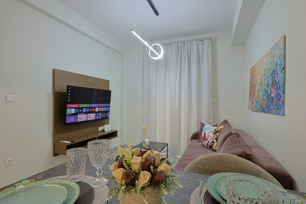 The apartment offers free Wi-Fi, a fully equipped kitchen, a spacious living room with a Smart LG TV, and a comfortable bedroom with a king-size bed. This apartment is an ideal choice for couples or solo travelers who wish to explore everything the city of Katerini has to offer!