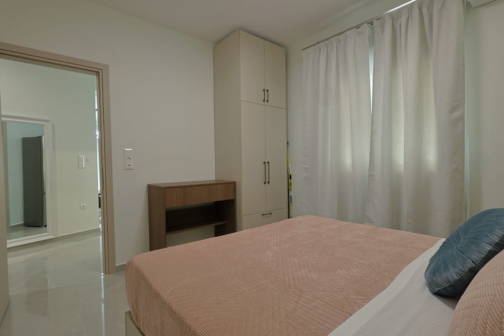 The apartment offers free Wi-Fi, a fully equipped kitchen, a spacious living room with a Smart LG TV, and a comfortable bedroom with a king-size bed. This apartment is an ideal choice for couples or solo travelers who wish to explore everything the city of Katerini has to offer!